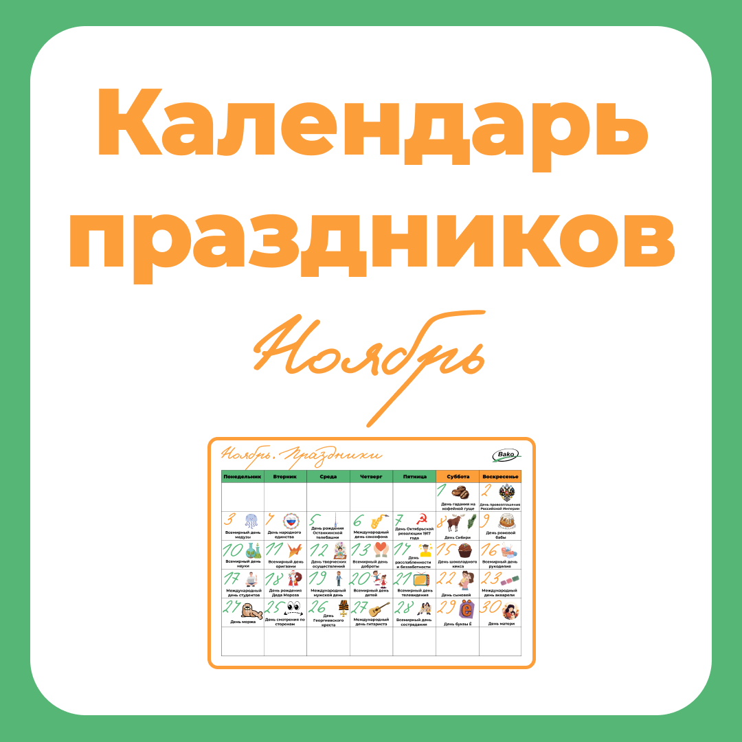 В календаре собраны весёлые и интересные праздники на ноябрь. Можно повесить в классе или дома.