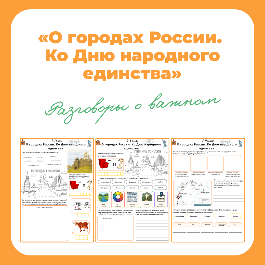 Рабочие листы «О городах России. Ко Дню народного единства»