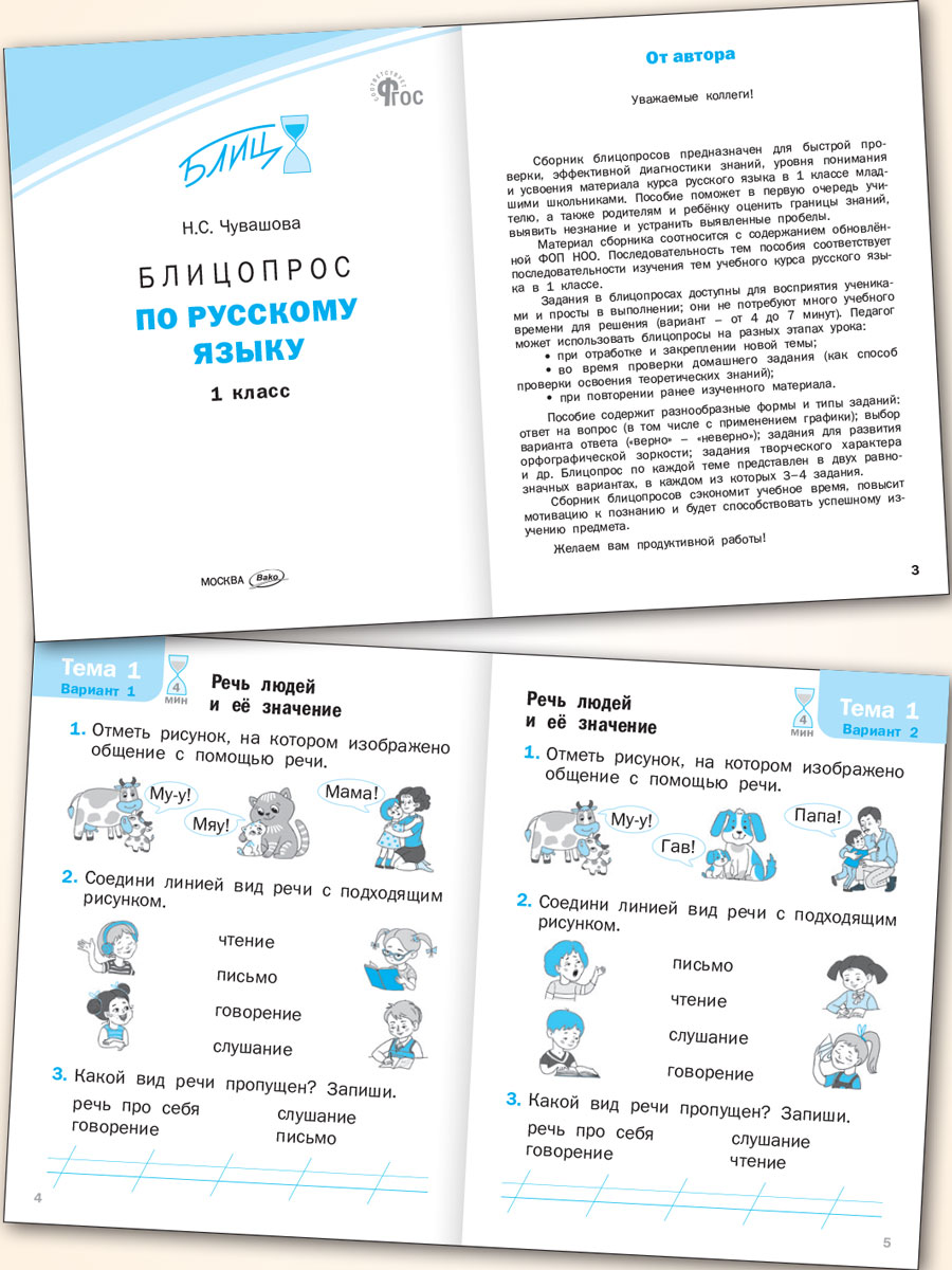Издание представляет собой сборник заданий для быстрой проверки знаний по русскому языку учащихся 1 класса. Формат «вопрос – ответ» развивает скорость мышления, иллюстрации поддерживают интерес и внимание детей. Блицопросы позволят педагогу на различных этапах урока оценить знания учеников и вовремя скорректировать образовательный маршрут каждого с учётом полученных результатов. Материал соответствует требованиям обновлённой ФОП НОО по предмету «Русский язык», 1 класс.
