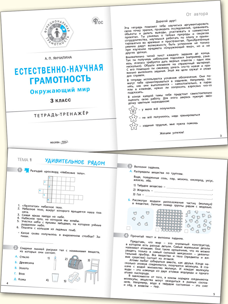 Пособие составлено в соответствии с требованиями действующих ФГОС НОО к образовательным результатам и ФОП по предмету «Окружающий мир» и направлено на формирование естественно-научной грамотности младшего школьника как части функциональной грамотности обучающихся. Сборник содержит практико-ориентированные задания, представленные в разных формах: исследовательские, проблемные (ситуативные) задачи, задания, направленные на формирование эмоционально-положительного отношения к природе, осознание ценности здоровья и др. Тетрадь-тренажёр поможет учащимся освоить различные виды учебной деятельности и сформировать практические умения.
