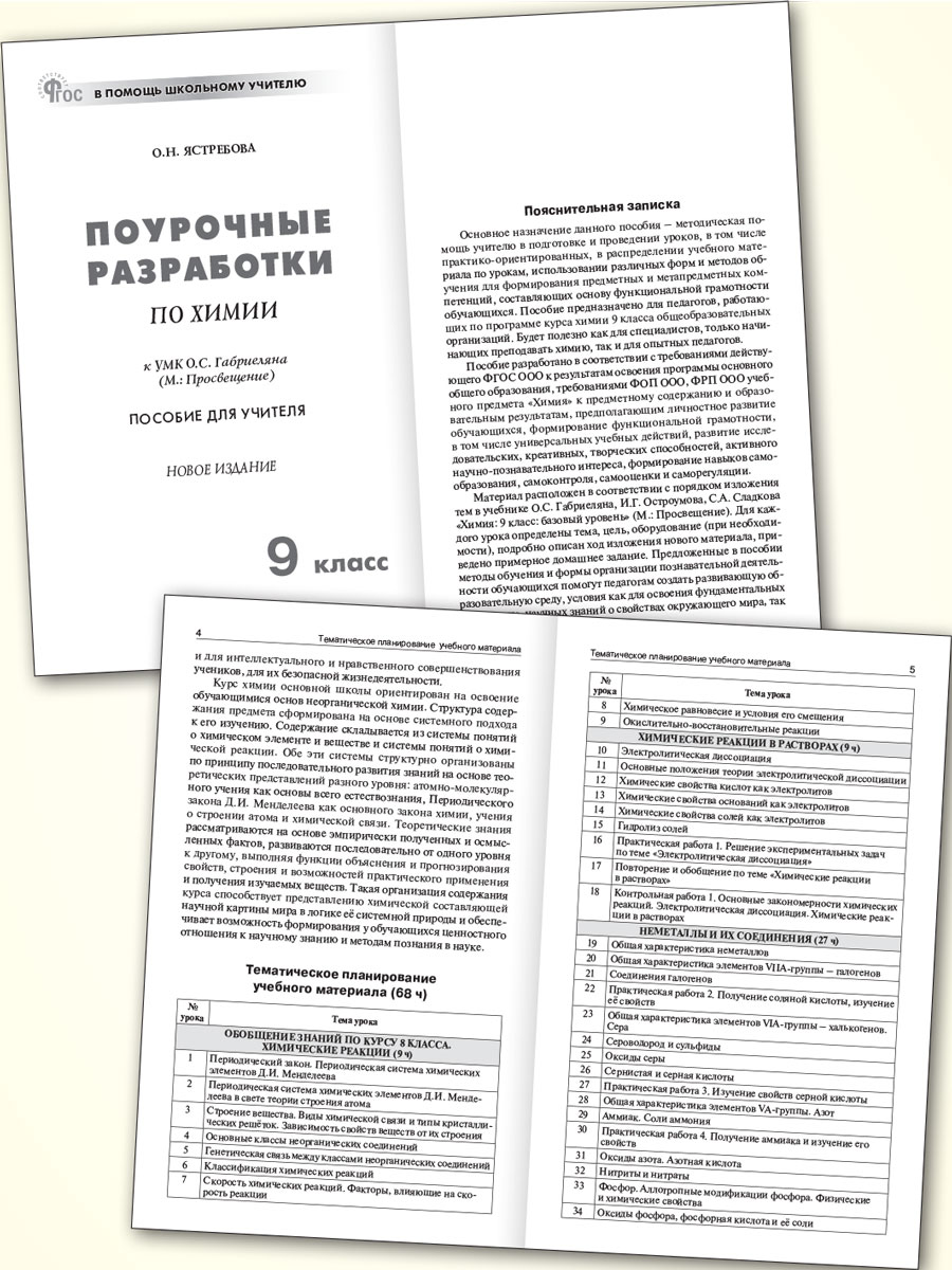 Поурочные методические разработки составлены по учебнику О.С. Габриеляна и др. «Химия: 9 класс: базовый уровень» (М.: Просвещение), входящему в федеральный перечень учебников (приказ Минпросвещения России от 26.06.2025 № 495). Материал соответствует требованиям действующих ФГОС и ФОП ООО. Учитель найдёт здесь подробные, методически обоснованные планы уроков, контрольные, тестовые, самостоятельные работы и методику проведения лабораторных опытов.