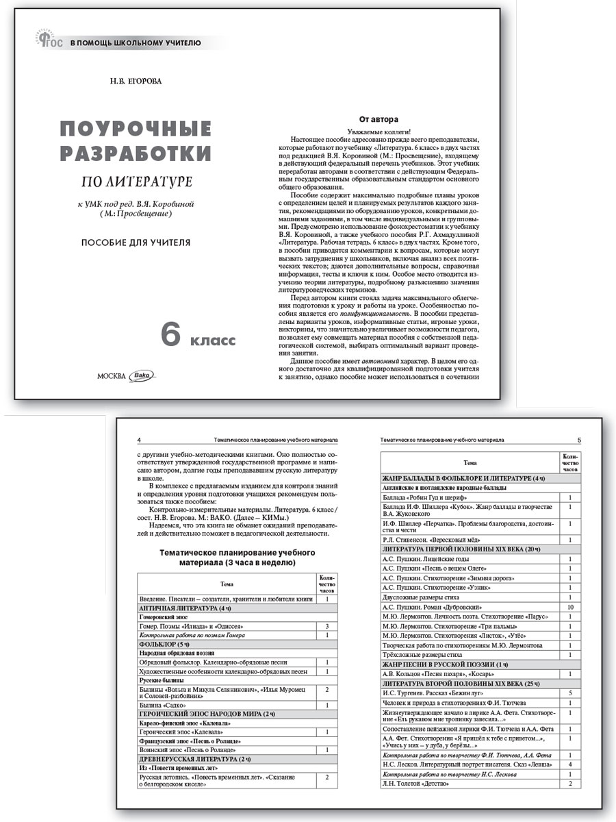 Поурочные методические разработки составлены по учебнику В.Я. Коровиной и др. «Литература. 6 класс» (М.: Просвещение), входящему в действующий федеральный перечень учебников (приказ Минпросвещения России от 21.09.2022 № 858). Материал соответствует требованиям действующих ФГОС и ФОП ООО (приказ Минпросвещения России от 18.05.2023 № 370). Здесь педагог найдет всё, что необходимо для качественной подготовки к уроку и его проведения: тематическое планирование учебного материала, подробные сценарии уроков с комментариями к вопросам и заданиям учебника, тесты, контрольные и творческие работы.