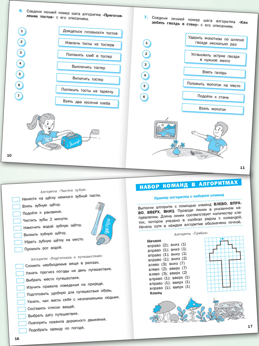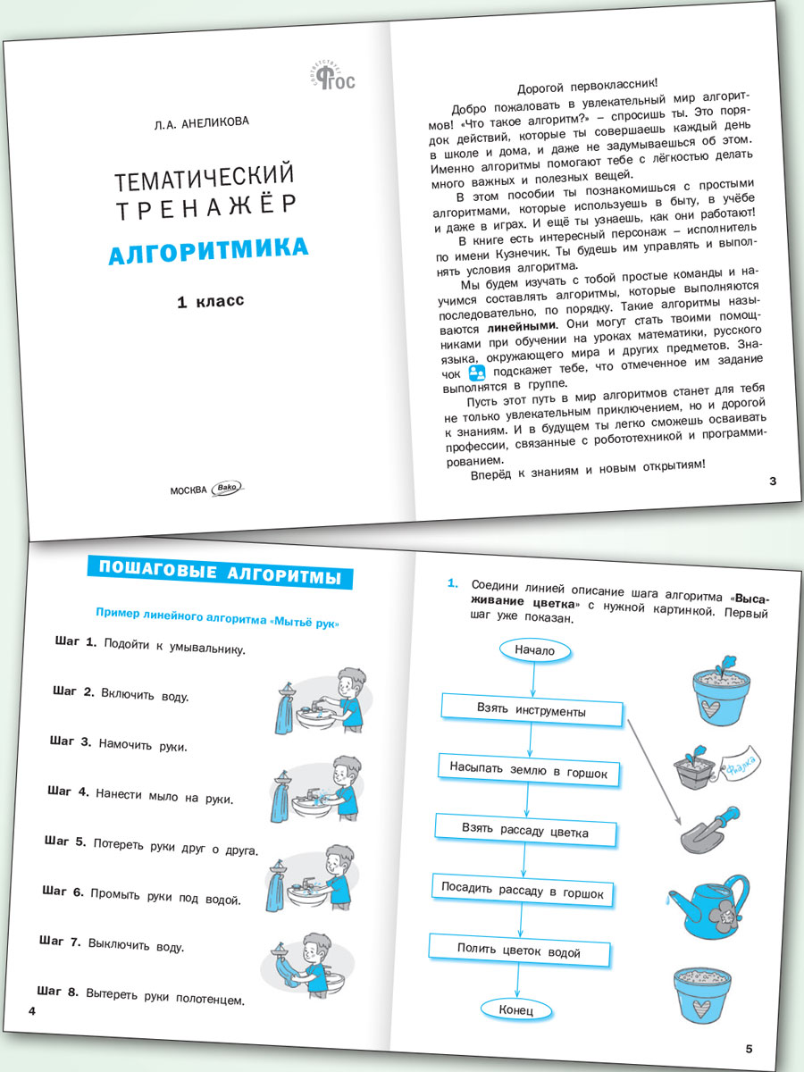 В тренажёре представлены доступные для восприятия младшего школьника алгоритмы, связанные с повседневной жизнью и часто используемые в быту. Материалы пособия помогут в освоении умений строить алгоритмы и станут показателями сформированности функциональной грамотности обучающихся. Содержание книги соответствует требованиям действующего ФГОС НОО и ФОП по учебному предмету «Математика».