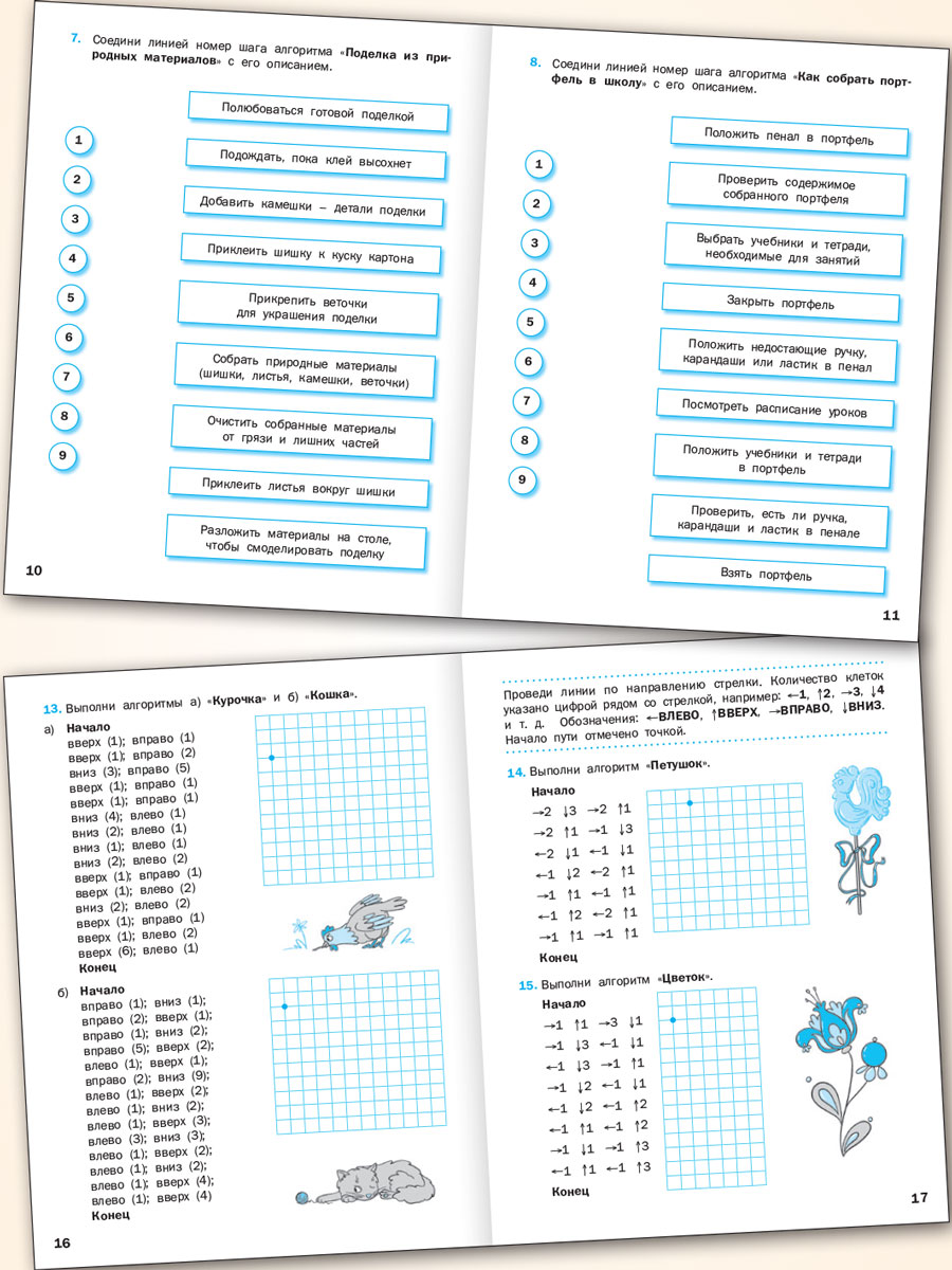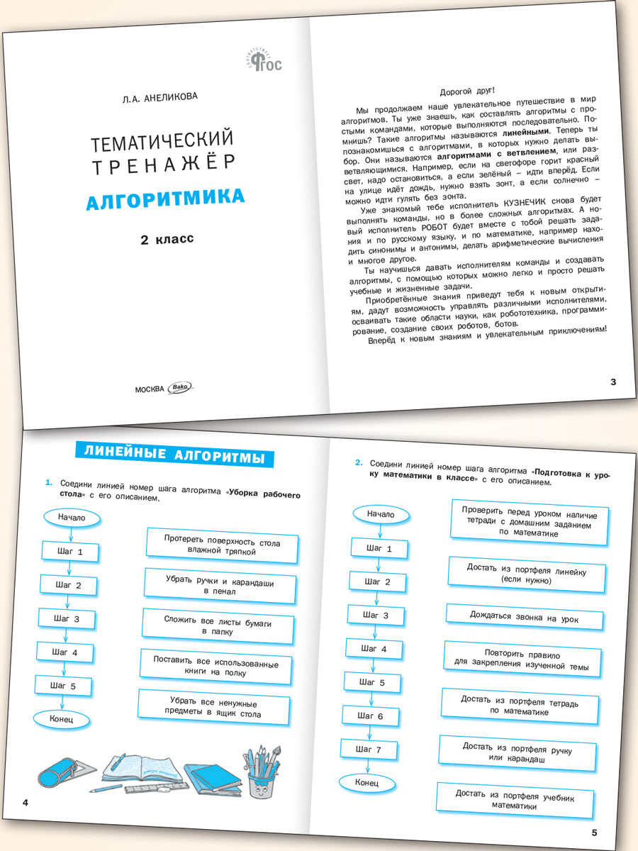 В тренажёре представлены доступные для восприятия младшего школьника алгоритмы, связанные с повседневной жизнью и часто используемые в быту. Материалы пособия помогут в освоении умений строить алгоритмы и станут показателями сформированности функциональной грамотности обучающихся. Содержание книги соответствует требованиям действующего ФГОС НОО и ФОП по учебному предмету «Математика».