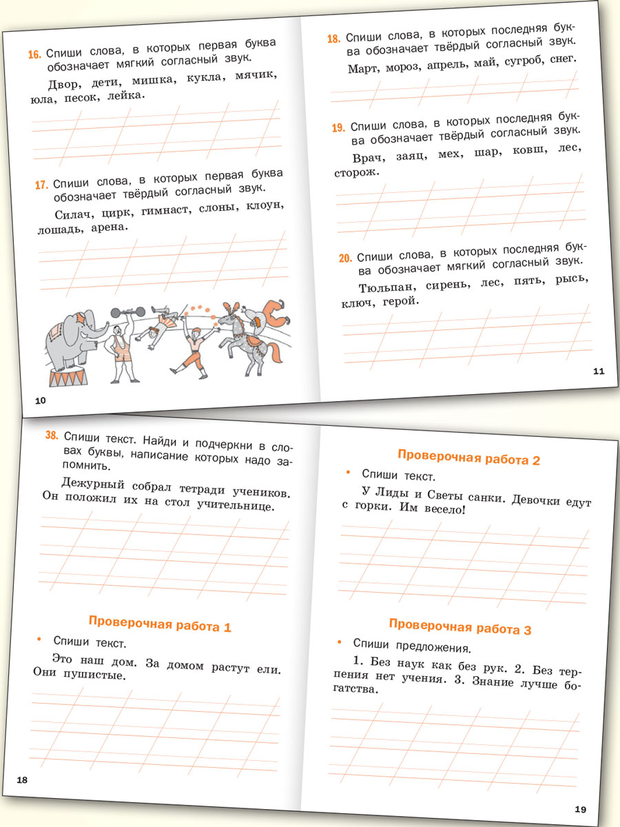 • Учит безошибочному списыванию слов, предложений и текста