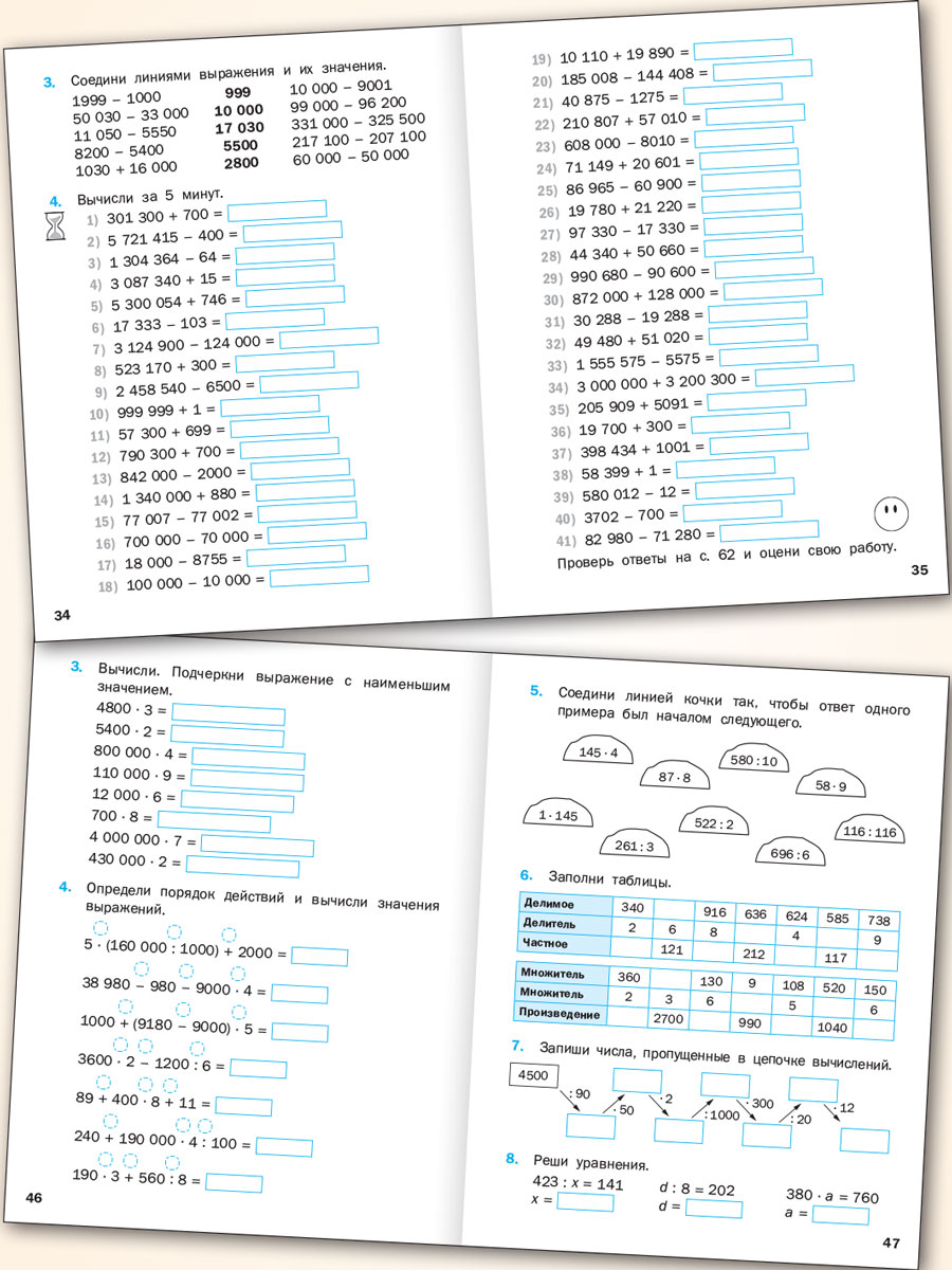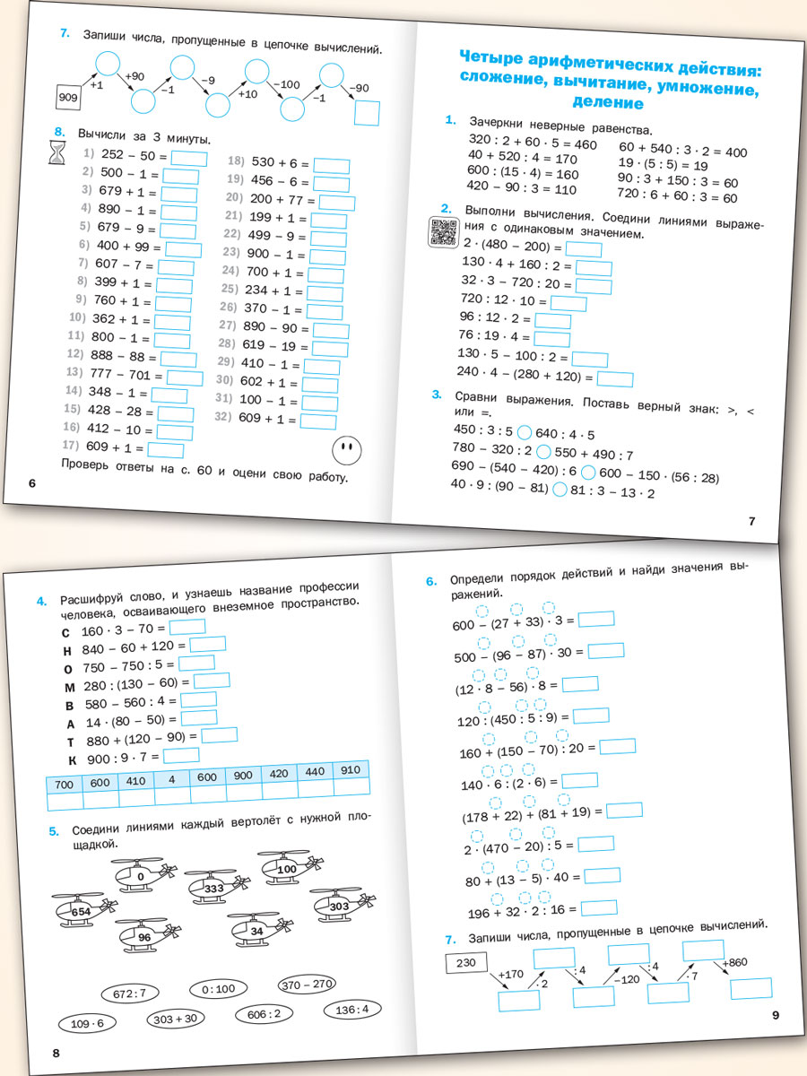 Пособие предназначено для отработки навыка устного счёта у учащихся 4 класса. Оно составлено в соответствии с требованиями ФОП и ФГОС НОО и ориентировано на структуру и содержание учебника по математике М.И. Моро серии «Школа России», может использоваться на уроке в классе и для занятий дома. В пособии представлена система разнообразных заданий на устные вычисления значений арифметических действий с многозначными числами.