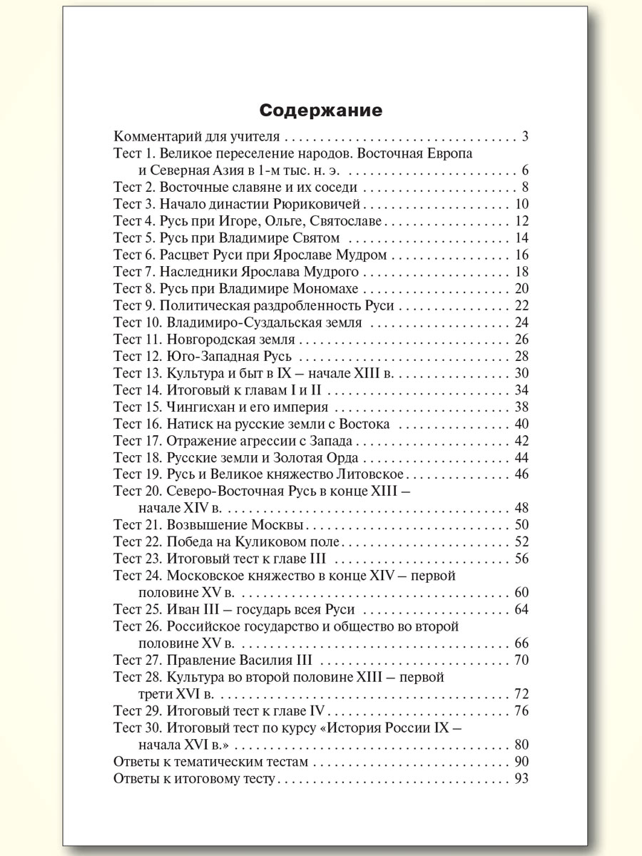 Представленные контрольно-измерительные материалы (КИМы) к учебнику «История России. 6 класс» под редакцией В.Р. Мединского, А.В. Торкунова тематически сгруппированы и составлены в соответствии с Историко-культурным стандартом и требованиями действующего ФГОС.