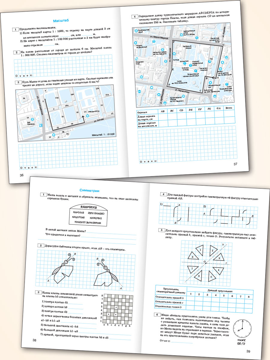 • отношения и пропорции (масштаб, симметрия, площади фигур);
